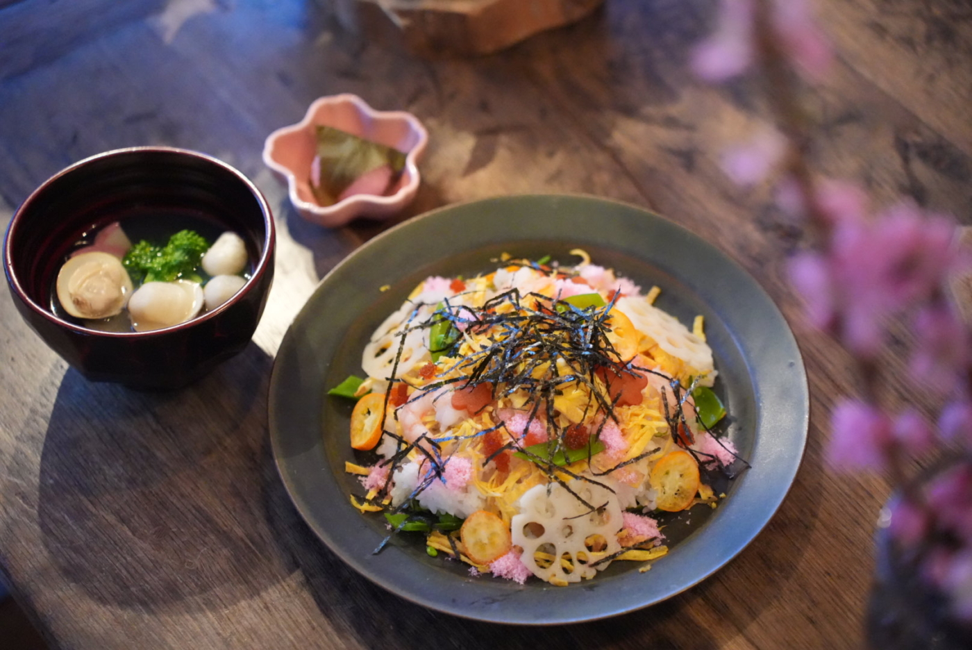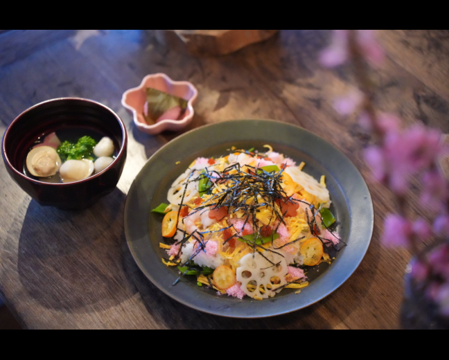 ちらし寿司に潮汁、桜餅🌸ちらし寿司には金柑のスライスをのせてみましたが、コレがめちゃくちゃ合いまして!ちょっと感動レベル✨今後の定番にしたいと思います♡